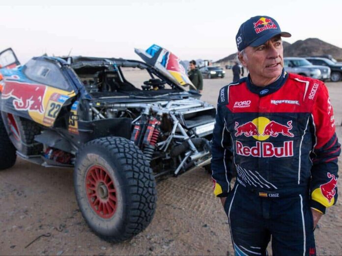 Този инцидент се случи на 327-ия километър, когато автомобилът се преобърна напред през една дюна и се спря на покрива си. Сайнц и вторият пилот Лукас Круз успяха да излязат невредими от катастрофата .