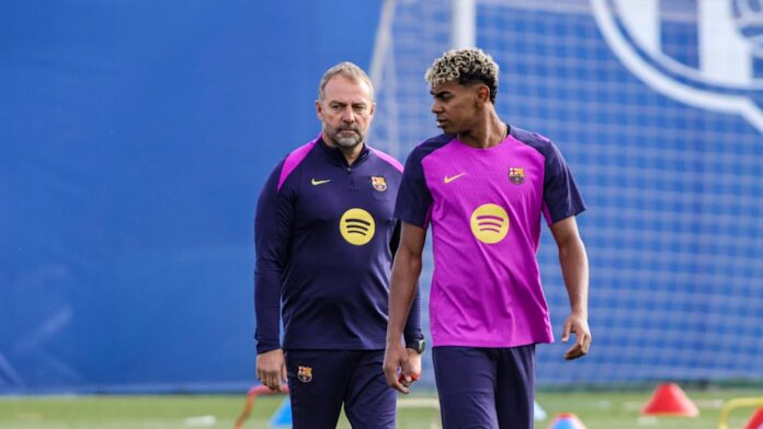 La rueda de prensa de Hansi Flick iba a tratar sobre el próximo partido del FC Barcelona en el campo del Atlético de Madrid. Sin embargo, el ex seleccionador nacional también aprovechó la ocasión para comentar el escándalo racista que se había producido unos días antes durante el partido de prueba entre España y Egipto en el estadio del rival de la ciudad, el Espanyol, y para elogiar a su protegido Lamine Yamal.
