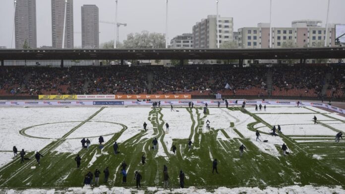 Curiosas escenas en el partido de la primera división suiza entre el FC Zúrich y el FC St. Gallen. Una fuerte nevada pone el partido al borde de la cancelación en los primeros compases, pero entonces intervienen los aficionados