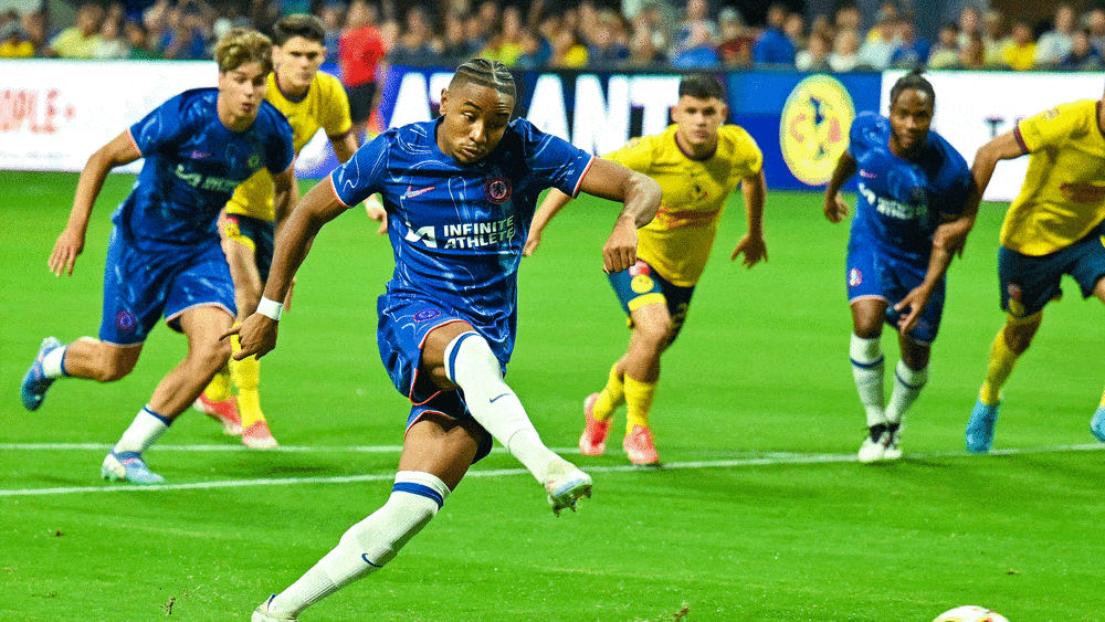 El nuevo fichaje veraniego, Dewsbury-Hall, debutó como titular en la victoria por 3-0 sobre el CF América, mientras que el guardameta Jörgensen (fichado del Villarreal por algo menos de 25 millones de euros) también se estrenó en la portería del Chelsea en los segundos 45 minutos. Sin embargo, la ventaja inicial corrió a cargo de Nkunku, que está demostrando su gran momento de forma en los preparativos veraniegos: Tras marcar un gol contra el Wrexham y otro contra el Celtic, el ex jugador del Leipzig también abrió el marcador contra el CF América, con un penal a los tres minutos, que introdujo con frialdad por el centro.