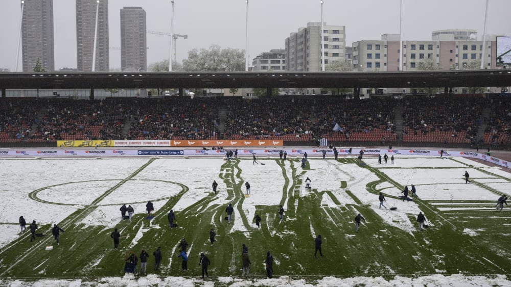 Que faire maintenant ? Les forces avec les souffleurs de chaleur n’avaient aucune chance. Il semblait que le match allait devoir être interrompu. Mais soudain, de nombreux autres bénévoles sont arrivés : des supporters – invités par les chefs de la sécurité du stade – ont envahi la pelouse avec des pelles à neige et ont commencé à déblayer. L’opération dure une demi-heure, puis Tschudi décide de continuer!