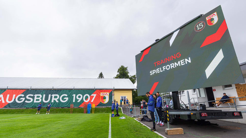 L’entraînement est néanmoins différent, ne serait-ce que parce qu’une nouveauté attend toujours les joueurs en bordure du terrain principal, à laquelle ils se sont déjà habitués. « Je ne connaissais pas ça avant, mais je trouve ça très positif », déclare par exemple Phillip Tietz à propos du mur vidéo XXL spécialement apporté d’Augsbourg.