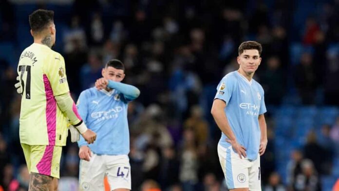 Seule équipe du top 4 à se présenter dès samedi, les Citizens voulaient naturellement prendre les devants, ce qui s’est longtemps ressenti sur le terrain. Face à des Eagles très bas sur le terrain, qui ont commencé à cinq positions différentes par rapport à Liverpool (1-2), les locaux ont fait preuve d’un grand sens du but en début de match, notamment sur le côté droit : Les occasions manquées d’Alvarez (5e) et de Rodri (16e) ont été provoquées par des passes de la droite.