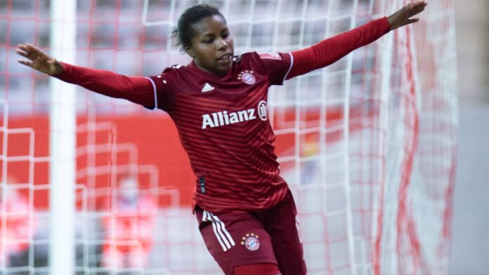 The Bayern women then looked a little unsettled, but survived this phase – and scored a deserved goal themselves: In the 43rd minute, Gwinn crossed accurately from the left to Schüller, whose header landed in the net.