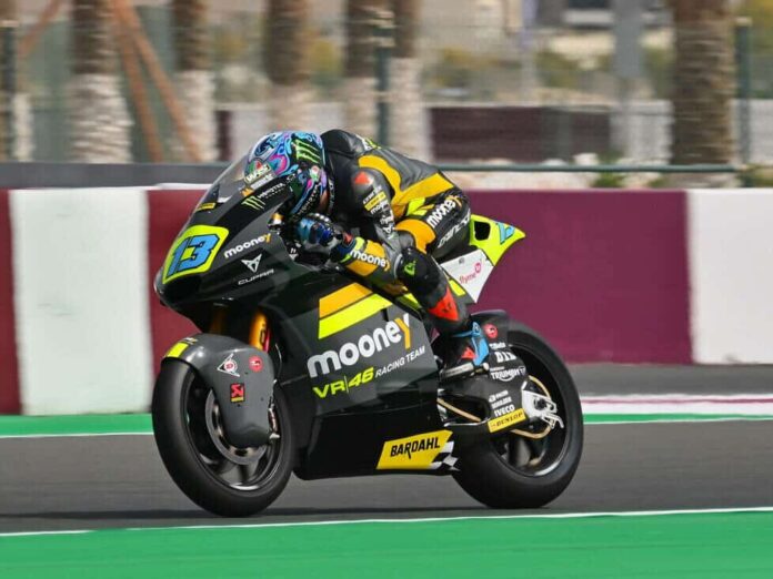 VR46 youngster Celestino Vietti was able to celebrate his first pole in qualifying for the Moto2 season opener in Qatar. The Kalex rider benefited from a track limits offence by Sam Lowes, who lost his fastest lap and dropped from first to third, still behind Tony Arbolino (grid position).