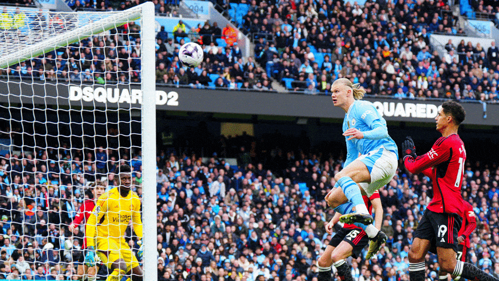 Het was misschien wel de scène van de Manchester derby, hoewel het niet een van de vier doelpunten was. In de 45e minuut zette de uitblinkende Phil Foden – met de stand op 0-1 – met zijn hoofd voor na een perfect uitgevoerde aanval in het vijfmetergebied – maar Erling Haaland slaagde erin om de bal vanaf ongeveer twee meter met zijn voet over het lege doel te tillen. Als de Noor gewoon met zijn hoofd had gekopt, had Man City waarschijnlijk nog voor rust gelijkgespeeld.