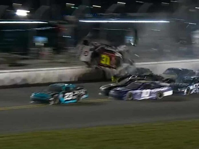De laatste ronde van de NASCAR Xfinity-race – de tweede divisie – op de Daytona International Speedway had het allemaal: Myatt Snider verloor na contact de controle over zijn auto op het rechte stuk achteraan de vier kilometer lange superspeedway en werd in de lucht geslingerd. De Amerikaanse Amerikaan crashte tegen de vangrail,