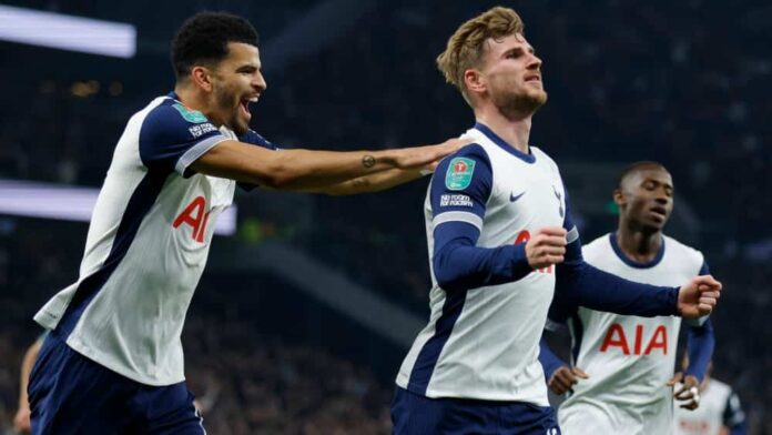 Tottenham Hotspur verslaat Manchester City bij de laatste 16 van de League Cup. Werner zette Spurs op weg naar de overwinning met zijn eerste doelpunt van het seizoen