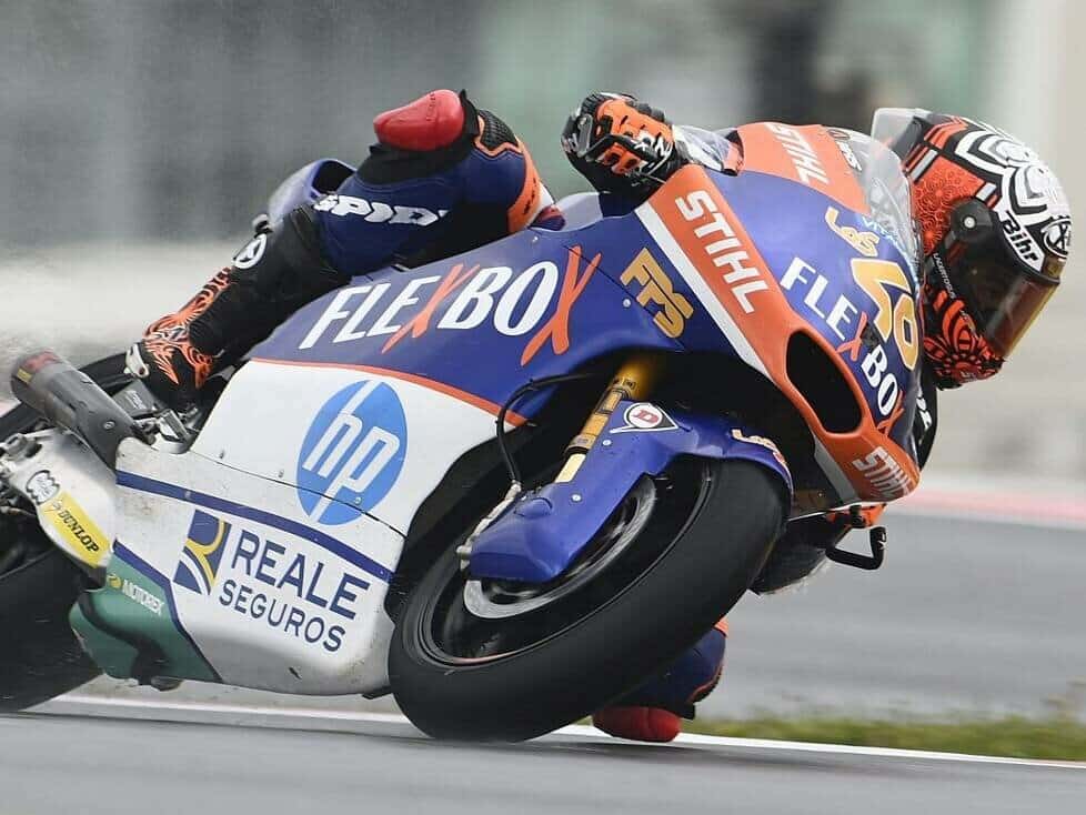 Aron Canet domineerde de eerste vrije training van de Moto2 in Barcelona. De Kalex-rijder nam al vroeg de leiding en hoefde die maar één keer kort af te staan aan Augusto Fernandez, maar drong met een beste tijd van 1’44.450 terug naar de tweede plaats. Uiteindelijk werden de twee slechts 24 duizendsten van elkaar gescheiden.