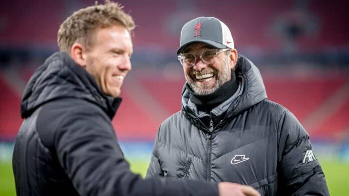 Gevraagd naar het in de media circulerende bericht dat Klopp ondanks het vijfjarige contract vrij zou komen voor zijn eventuele opvolging als bondscoach, antwoordde Nagelsmann: “Ik ken Olli Mintzlaff heel goed en ik kan me niet voorstellen dat die clausule erin staat.”