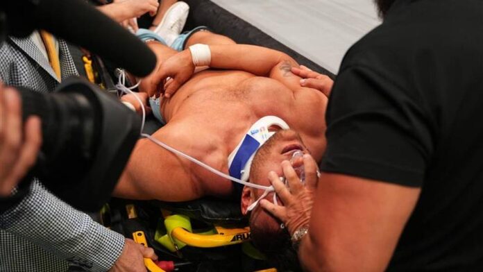 MJF werd toen vastgebonden op een brancard, aangesloten op een zuurstofmachine en afgevoerd door paramedici, vergezeld door producer en part-time worstelaar Pat Buck, die onlangs was overgestapt van WWE naar AEW.