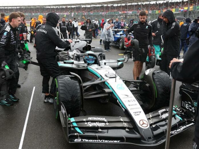 Lokalmatador George Russell ruilde nog voor de start zijn vierde plaats op de startgrid in voor slicks – een gok die Mercedes niet loonde