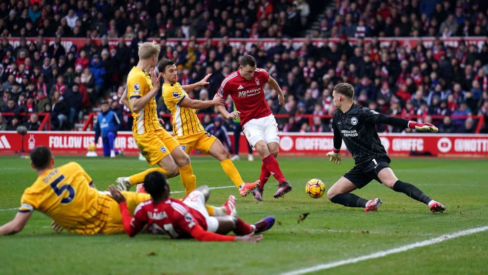 Fabian Hürzeler’s Brighton & Hove Albion leden zaterdag schipbreuk in Nottingham en verliezen langzamerhand het zicht op de internationale plaatsen.