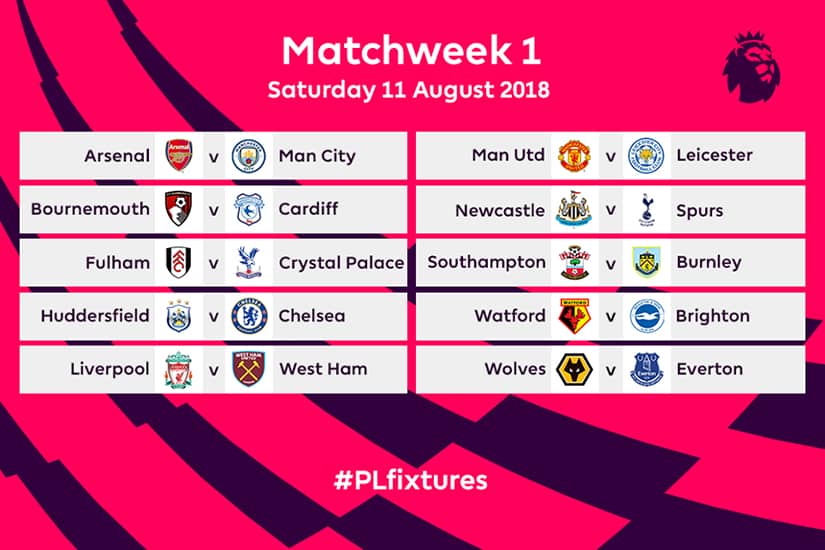 Newly promoted Fulham will be very excited to play their first game against London rivals Crystal Palace in their first game. Match day 2 sees Chelsea host Arsenal in another London derby, which will see a new look Arsenal following the departure of Arsene Wenger.