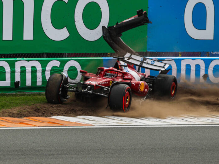 Charles Leclerc vive uma tarde amarga no Grande Prémio da Holanda. Após uma primeira parte forte, um ritmo sólido e a perspetiva de pontos importantes, o piloto da Ferrari acabou na barreira de Zandvoort após uma colisão com Andrea Kimi Antonelli.