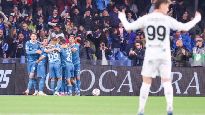 Os napolitanos começaram de forma cautelosa, o Empoli manteve-se bem no início e até marcou o primeiro golo por intermédio de Fazzini (6º). Os anfitriões, por outro lado, entraram melhor no jogo após cerca de um quarto de hora e marcaram o primeiro golo com o seu primeiro remate: McTominay teve muito espaço no centro e tentou a sua sorte a cerca de 20 metros – 1:0 (18′). O remate de Politano (22) e o cruzamento de David Neres para Politano (27) obrigaram o guarda-redes do Empoli a importantes defesas.