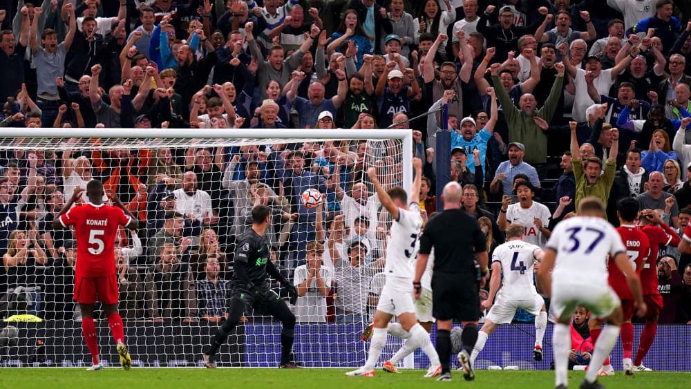No contra-ataque direto, os Spurs assumiram a liderança no lado oposto. Maddison lançou Richarlison habilmente para fora, este encontrou Son com a bola fora da área, que facilmente marcou (36.). Mas o Liverpool contra-atacou antes do intervalo: Gakpo marcou na sequência de uma situação normal e fez o 1-1 ao intervalo (45.+4).