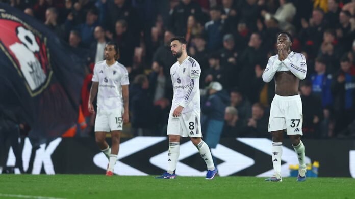No entanto, o empate não durou muito: quatro minutos depois, a bola caiu na cabeça de Hill e entrou na sua própria baliza na sequência de um canto (71′). O que Scott falhou por um triz com o seu cruzamento aos 76 minutos, Kroupi conseguiu pouco depois. A falta de Maguire sobre Evanilson não só resultou num penalty para o AFC, como também num vermelho direto para Maguire como último homem. Kroupi cobrou e converteu com segurança (81′). O Bournemouth voltou a tentar no prolongamento, mas não conseguiu marcar – mesmo nos nove minutos de descontos. Com isso, o United chegou a 51 pontos na temporada, enquanto o Bournemouth conseguiu o quinto empate consecutivo.