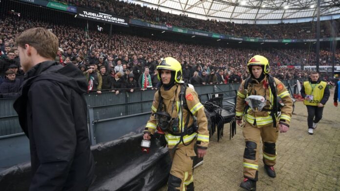 O jogo foi ensombrado por duas interrupções. Já tinha havido uma interrupção na primeira parte, porque os adeptos de ambos os clubes tinham lançado uma grande quantidade de pirotecnia. O mesmo aconteceu após o intervalo, com o resultado em 0-0, mas desta vez uma faixa do Feyenoord incendiou-se. Depois de tentativas infrutíferas para dispersar o fumo e travar o fogo, os bombeiros tiveram finalmente de intervir, pelo que o jogo teve de ser interrompido durante meia hora.