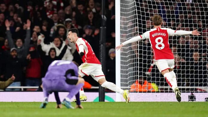 From then on, Arsenal were permanently in the ascendancy and largely in control of the game, even in administration mode. Mac Allister went close again for LFC after a corner (77′), but many of the visitors’ crosses failed to find their target. Ödegaard did find the free-standing Kiwior with one such cross at the other end, but he headed into Alisson’s arms (84′).