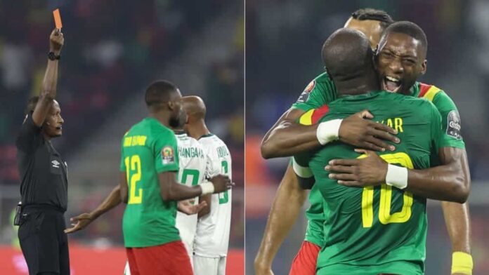The roles were even more clearly distributed than they already were, Cameroon were the heavy favourites. And as if there weren’t enough obstacles in the way of the underdogs, things got even worse after seven minutes: after a foul by Abdou on Cameroonian Ngamaleuo, the VAR called in, whereupon referee Bamlak Tessema Weyesa took a second look at the scene and issued a straight red for the rude kick from behind on the foot.